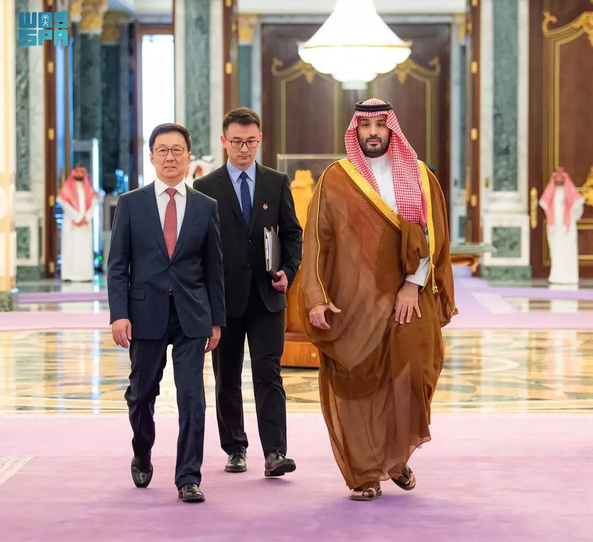 國家副主席韓正訪問沙特阿拉伯,在利雅得會見沙特王儲兼首相穆罕默德。