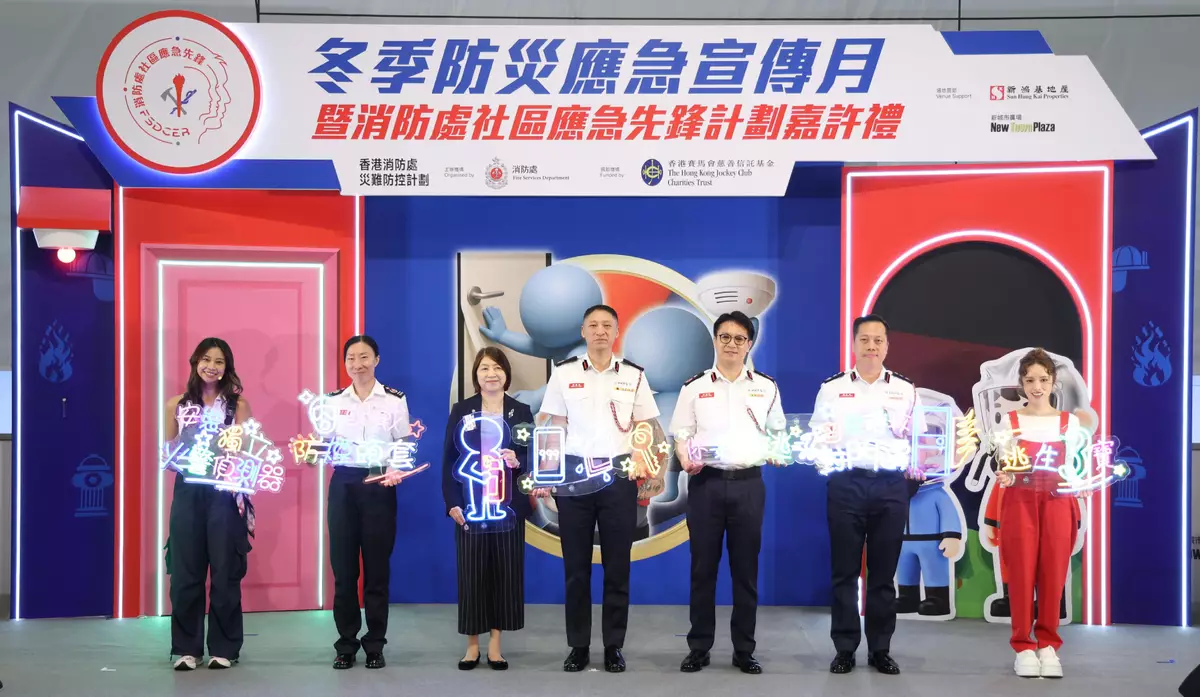 消防處舉行冬季防災應急宣傳月啓動儀式,宣傳月以「封門待救」、「頭套防煙」及「偵測預警」三大應急技巧為主題,教育市民如在遇上火警如何應對。