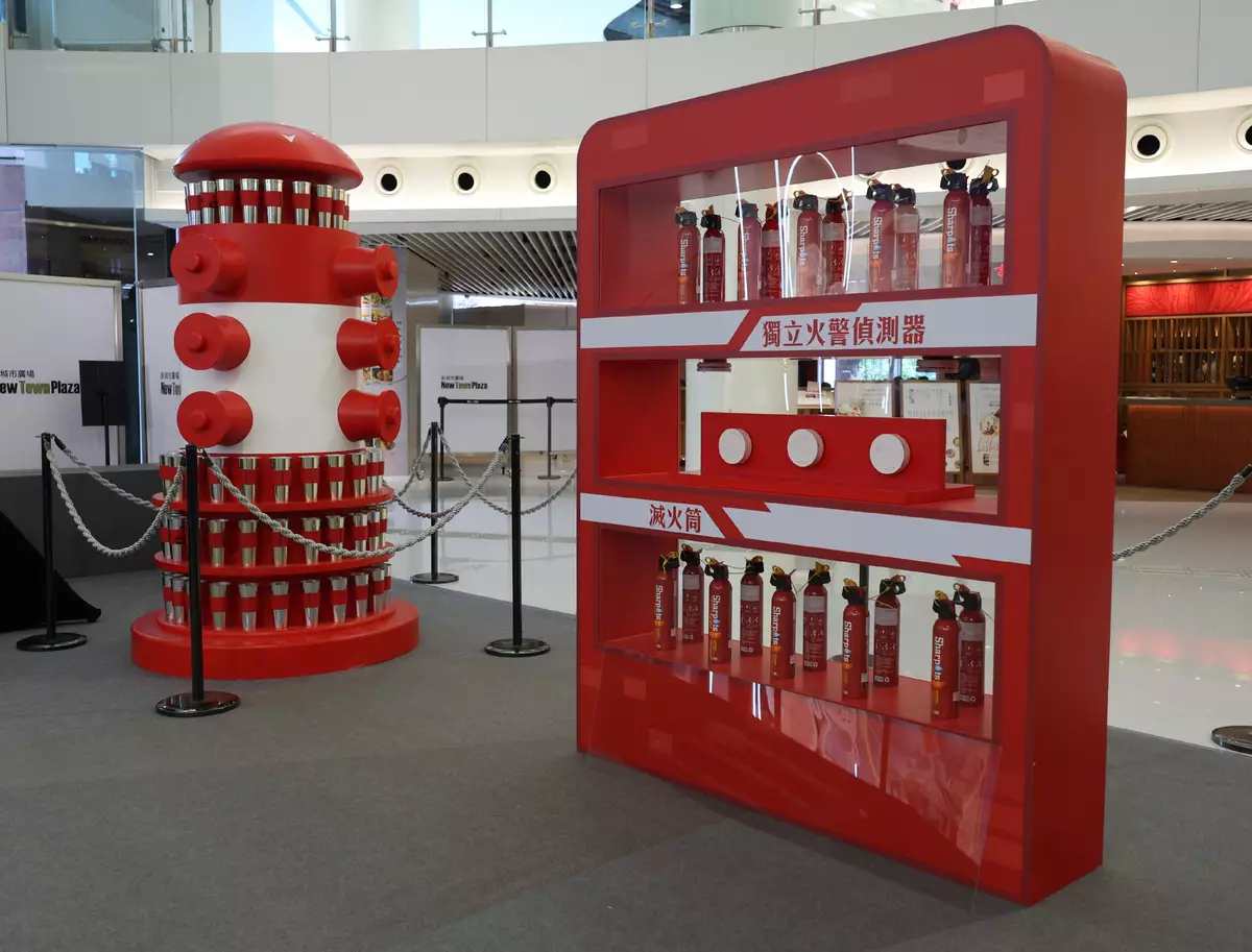 獨立火警偵測器和滅火筒展示區。 政府新聞處圖片