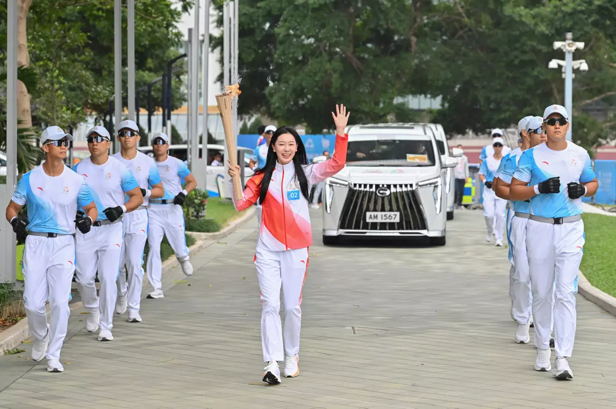 十五運會火炬接力傳遞在香港、澳門、廣州、深圳四個城市同步舉行,其中香港賽區有50名火炬手參與。