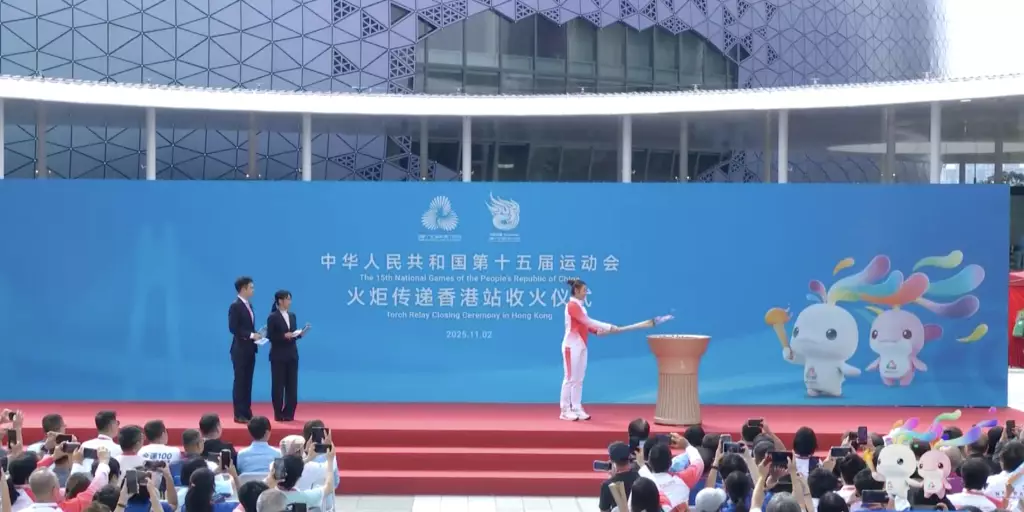 全運會香港站火炬接力傳遞結束,歷時約一個多小時,跑最後一棒的火炬手、香港女子劍擊運動員佘繕妡,將火炬送到啟德體育園中央廣場,並進行收火儀式。