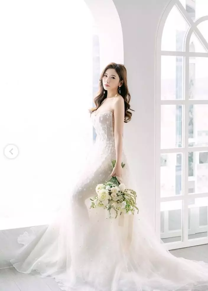 近日再晒出一輯唯美婚紗照。