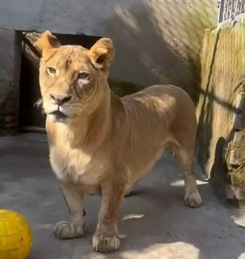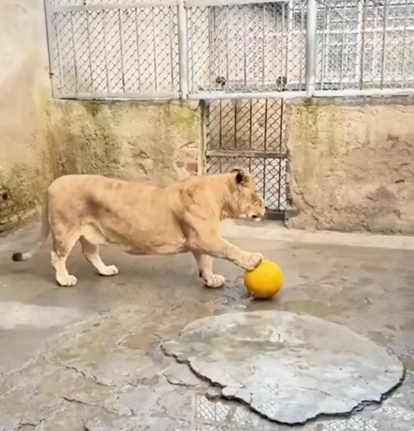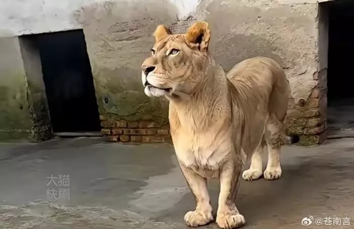 內地動物園非洲獅長「柯基式短腿」未亮相憑萌照爆紅。微博影片截圖