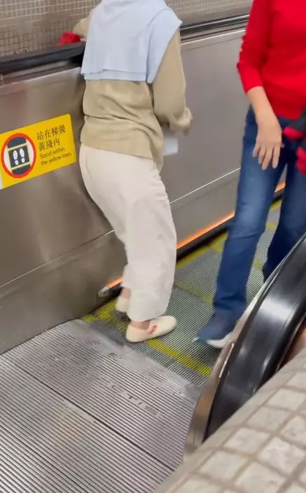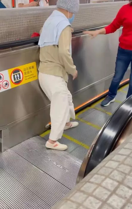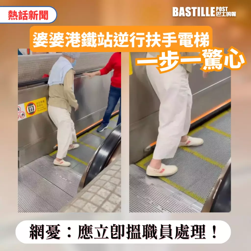 有網友日前在社交平台出片分享,只見片中有一位老婦在往上的扶手電梯頂端處,以逆行方向行走,情境相當驚險,但卻無人上前提醒或阻止。