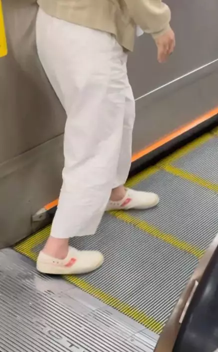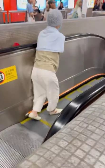約長10秒的短片,可以見到一位衣着光鮮,頭戴冷帽和口罩的婆婆,正嘗試逆方向地向往上的扶手電梯行走,只見她兩手緊緊扶着電梯的扶手,小心翼翼地努力向前行。她的行為引起了樓主的注意,並被拍下。