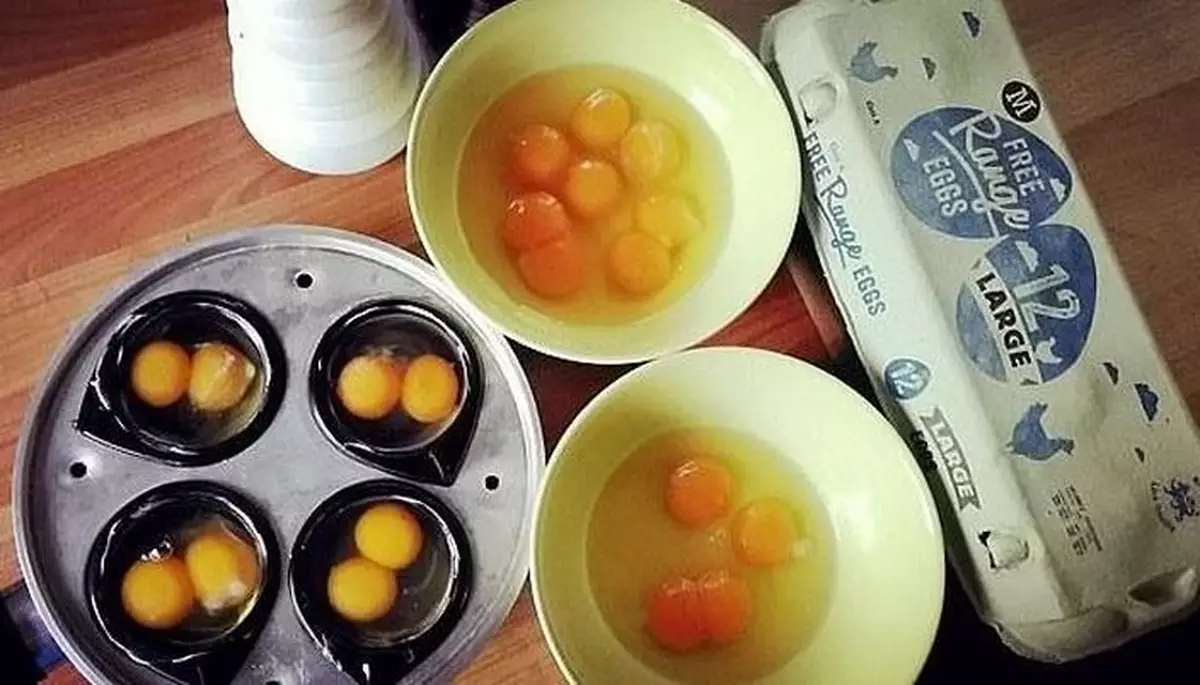 英國蘭開夏郡一對夫婦在超市買了一盒雞蛋,而其中十隻蛋都有兩個蛋黃,比中六合彩還要難,令人嘖嘖稱奇!