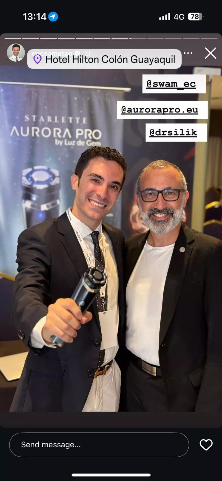 AURORA PRO 的超卓功效不僅體現在用戶體驗上,更獲得了國際醫學界的專業認可。知名皮膚科醫生及醫美講座講者 Dr. Carlos López 在親身試用後,對其給予了極高評價:「AURORA PRO 是護膚界的革新之作!這款多功能儀器將高階 EMS 微電流、射頻、超聲波和光療技術融入日常保養,不僅能顯著緊緻肌膚、消除粉刺,更能打造透亮光采——是我心中居家保養的首選。若你認真追求護膚成效,這絕對是值得投資的必備神器。」Dr. Carlos López 更在今年10月舉行的南美洲國際醫美博覽會(International SWAM Ecuador)上,為 AURORA PRO 進行主題演講,向全球醫美界的專業人士,深度剖析這款醫美級儀器的創新科技與臨床潛力。