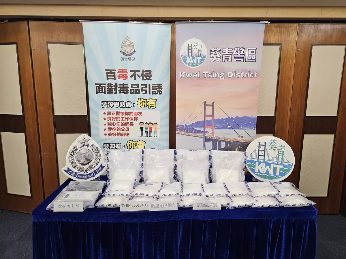 警方於11月1日在青衣展開反毒品行動,並以「販運危險藥物」罪拘捕1名54歲本地男子,檢獲約10公斤的懷疑可卡因及懷疑氯胺酮,市值超過620萬元。
