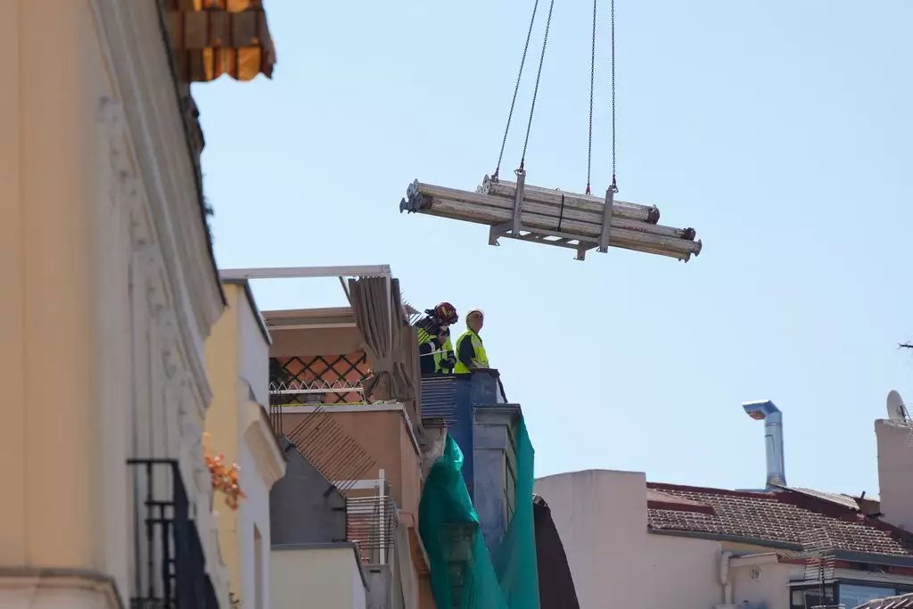 西班牙馬德里市一座改建中建築物倒塌。AP圖片