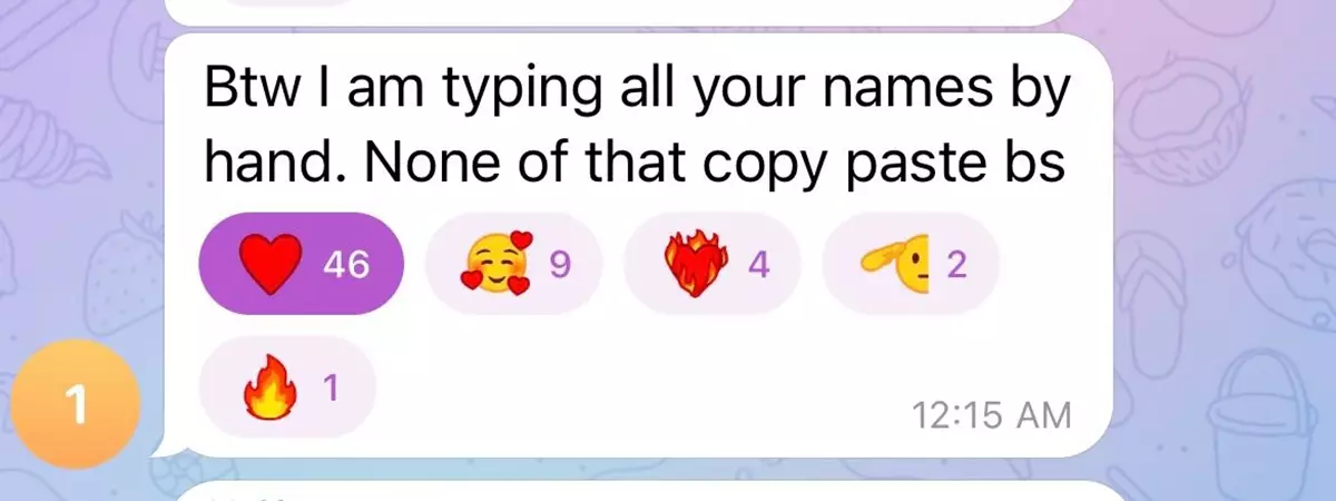 有粉絲在社交平台「Threads」晒出之YT通訊群組的截圖,並留言:「YT真係痴線佬一個!」可見YT逐一回覆復粉絲的祝福,而且每次回覆都會加上粉絲的網名,更講明每個名字都是手打出來而非「copy and paste」,最終回覆了約一個多小時!