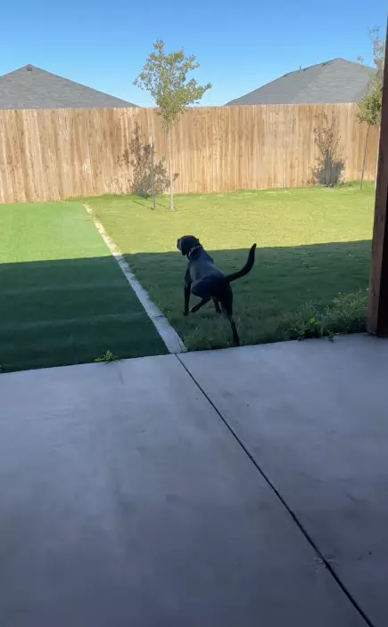 美國一隻拉布拉多犬隨飼主參觀新居時看見寬敞後院興奮爆衝,並當場「尿尿」劃地盤宣示主權。