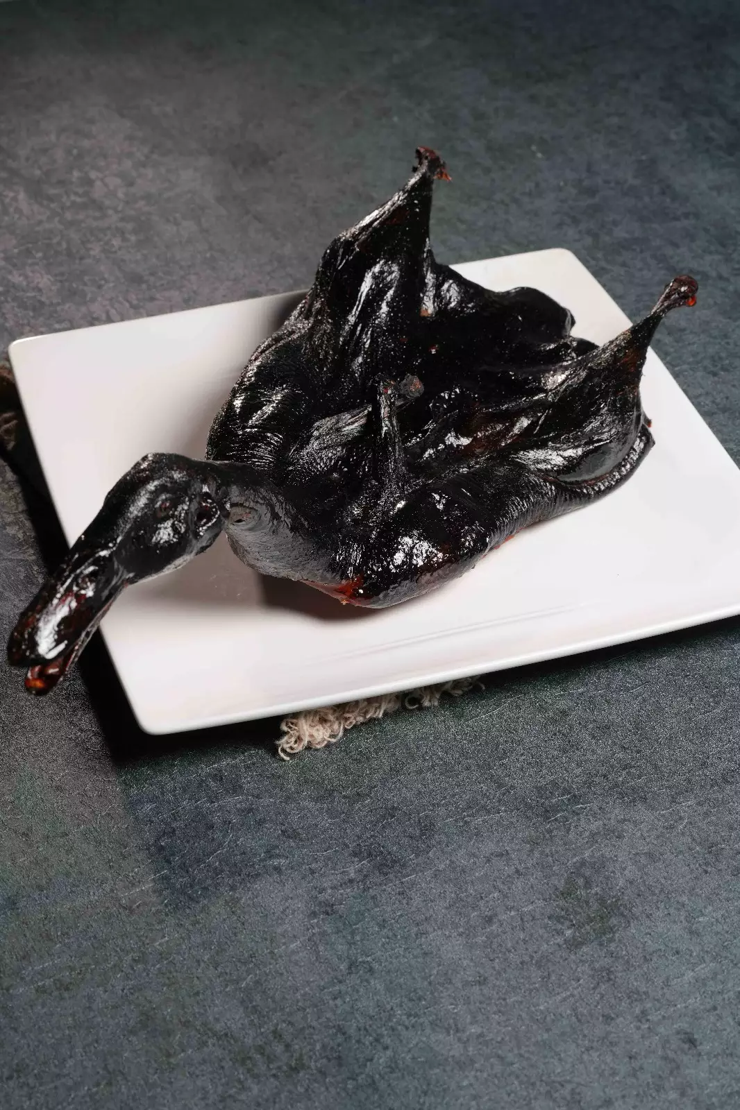 黑松露琵琶鴨 $138(半隻)HK$238(一隻);鎮店黑松露系列,新店推出全新黑松露琵琶鴨,以漆黑的造型配上驚人的口感,成新店主打菜式之一。