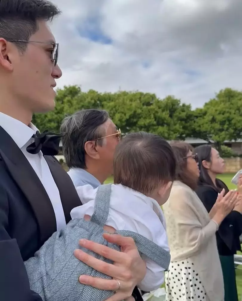 現年33歲的「十優港姐」麥明詩(Louisa)與機師老公盛勁為(Keith)婚後育有一子,一向保護愛兒私隱的她,近日一家三口赴澳洲出席好友婚禮時,首次無遮擋公開仔仔正面樣。相中七個月大B仔戴淺色太陽眼鏡,身穿恤衫吊帶褲,露出「米芝蓮」腳仔,萌爆鏡頭。