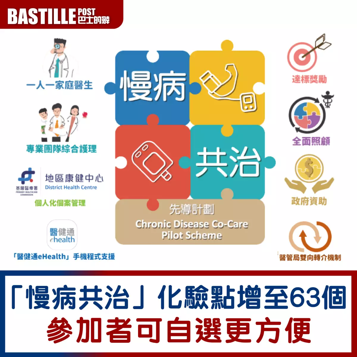 政府在2023年推出「慢病共治計劃」予45歲或以上未曾確診糖尿病或高血壓的香港居民,計劃包括透過使用私營醫務化驗服務接受相關慢病篩查。醫務化驗所服務點亦會由原有24個增至63個。
