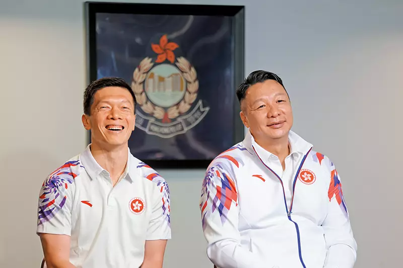 總警司馬偉卿(左)與警署警長李敬倫於十五運會展現實力和拼搏精神。