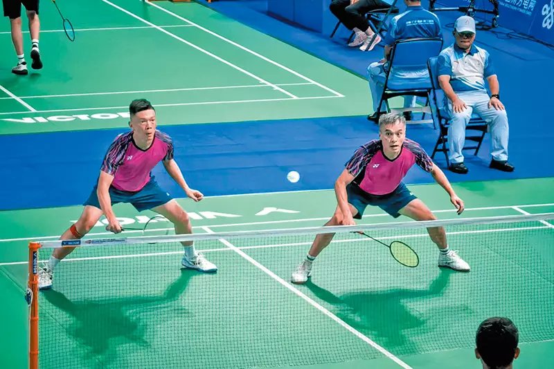總警司馬偉卿(左)首次代表香港出戰羽毛球群眾項目三場制雙打混合團體賽。