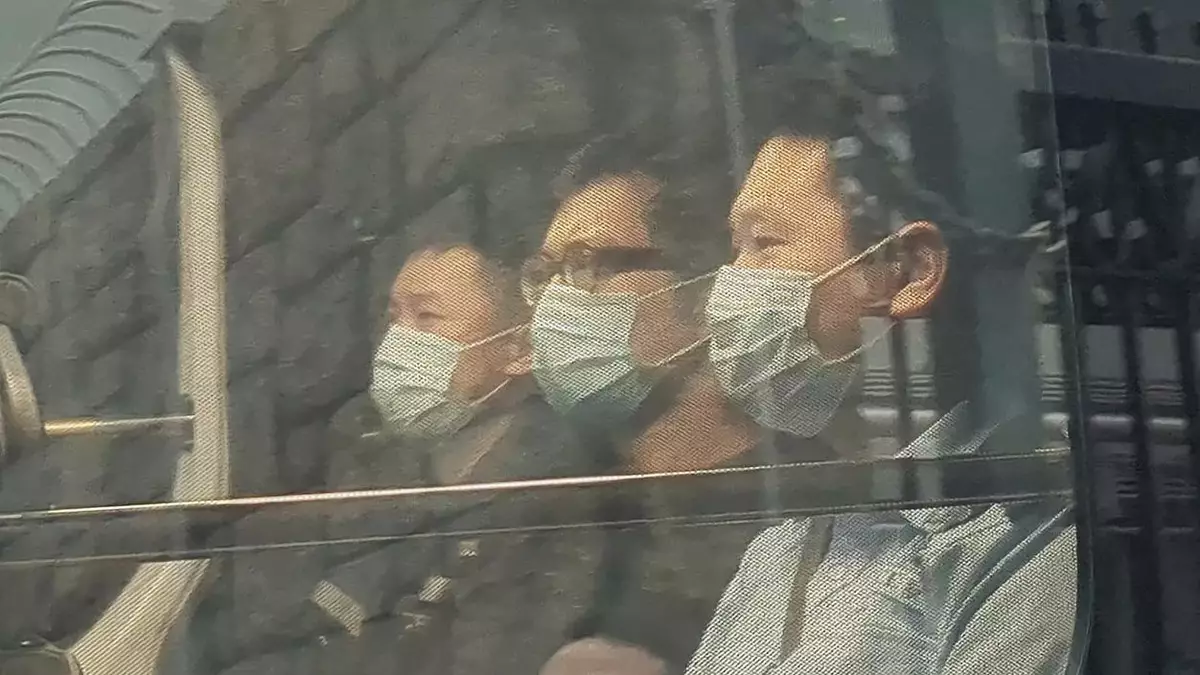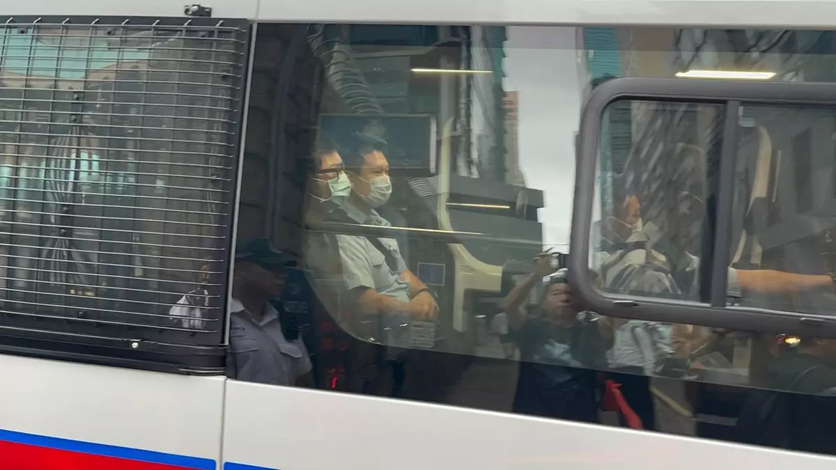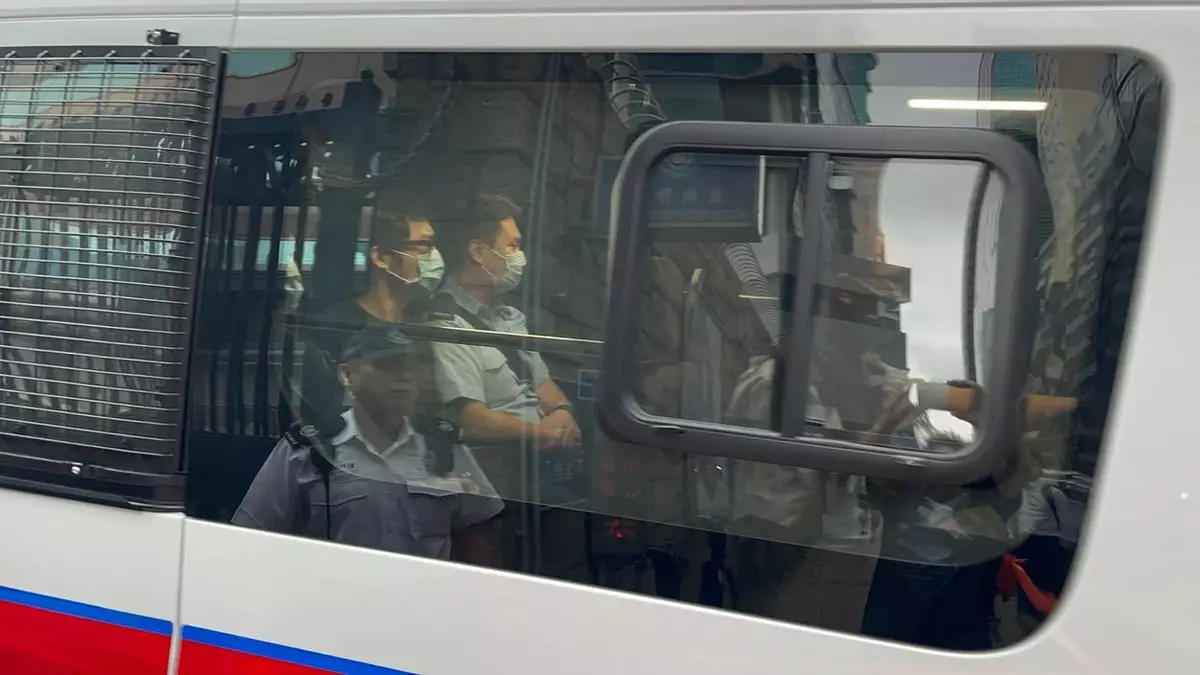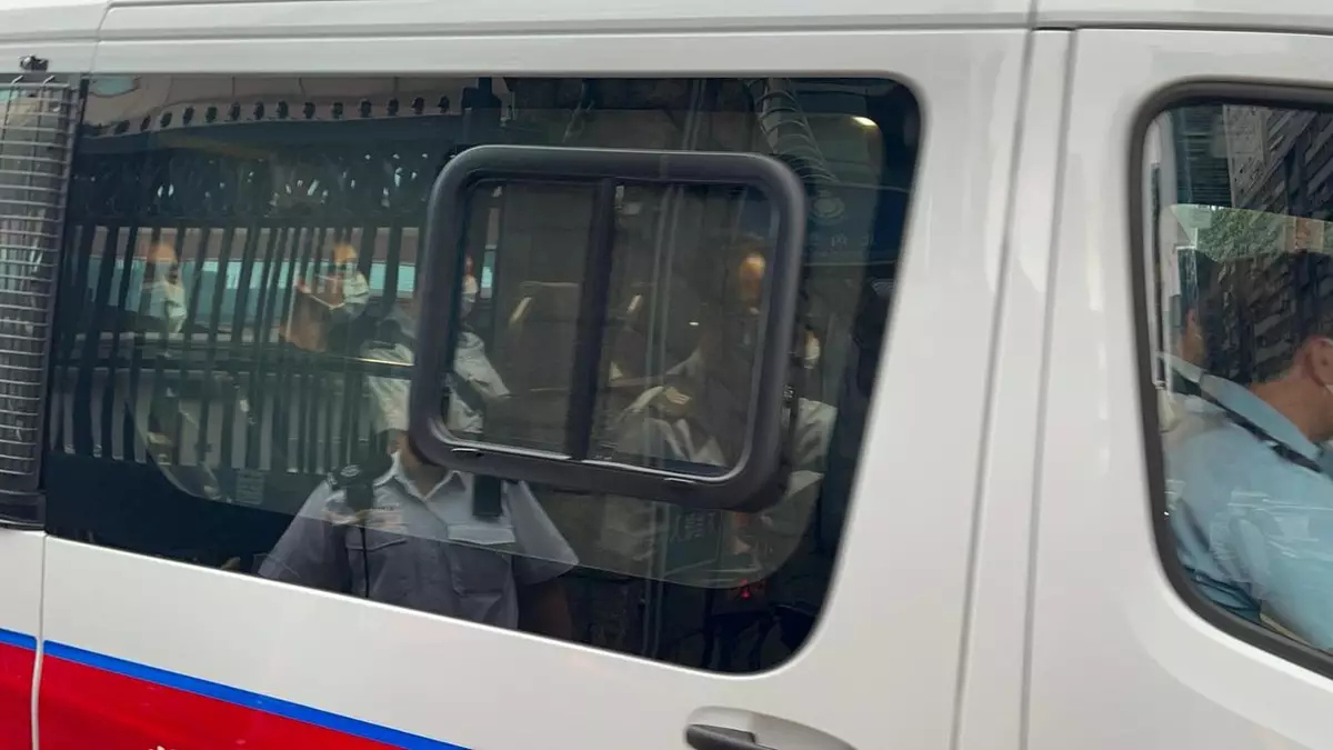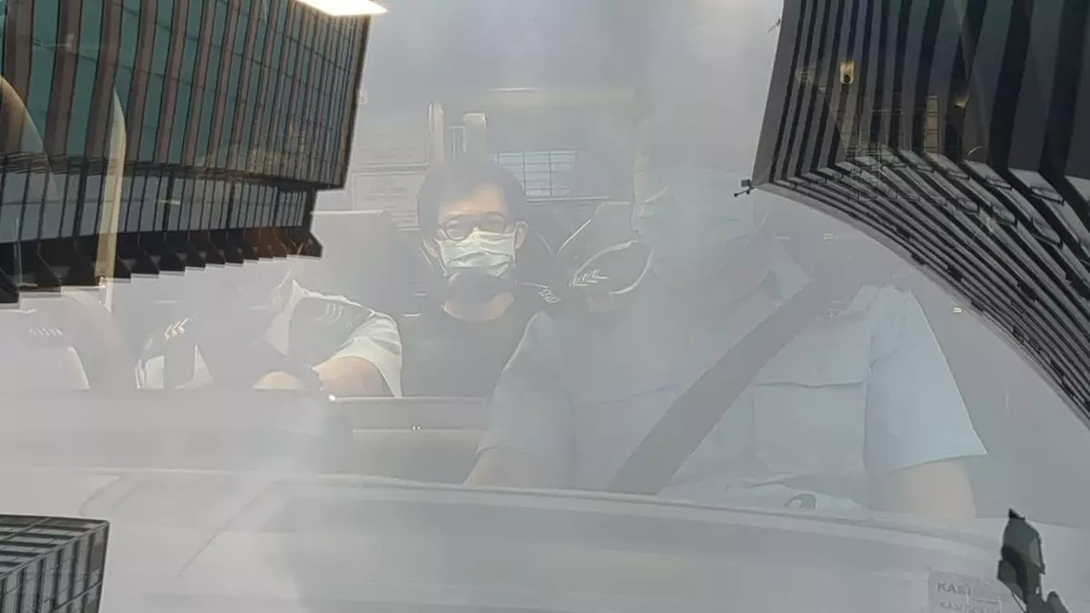 林作在警員的押解下,乘坐警車由北角警署前往東區法院應訊 。