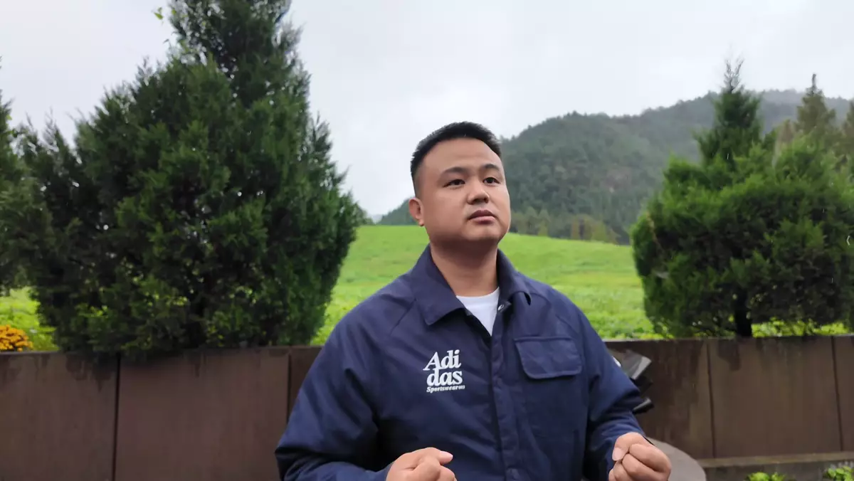 2008年地震發生時,李勛是北川中學高中一年級八班的學生,幸運地從廢墟中存活。如今他是北川中學的體育老師,站在北川中學高中部地震遺址前講述當時的情況。(巴士的報記者攝)
