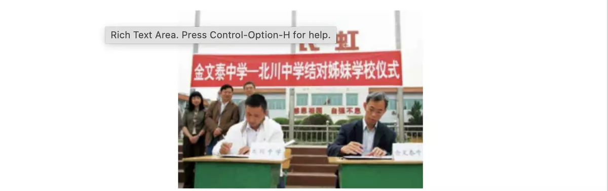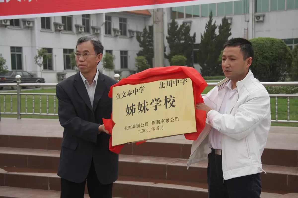 在長虹培訓中心,金文泰中學和北川中學露天簽署姊妹学校協議,開展兩地兩校交流。(2009)楊向杰供相