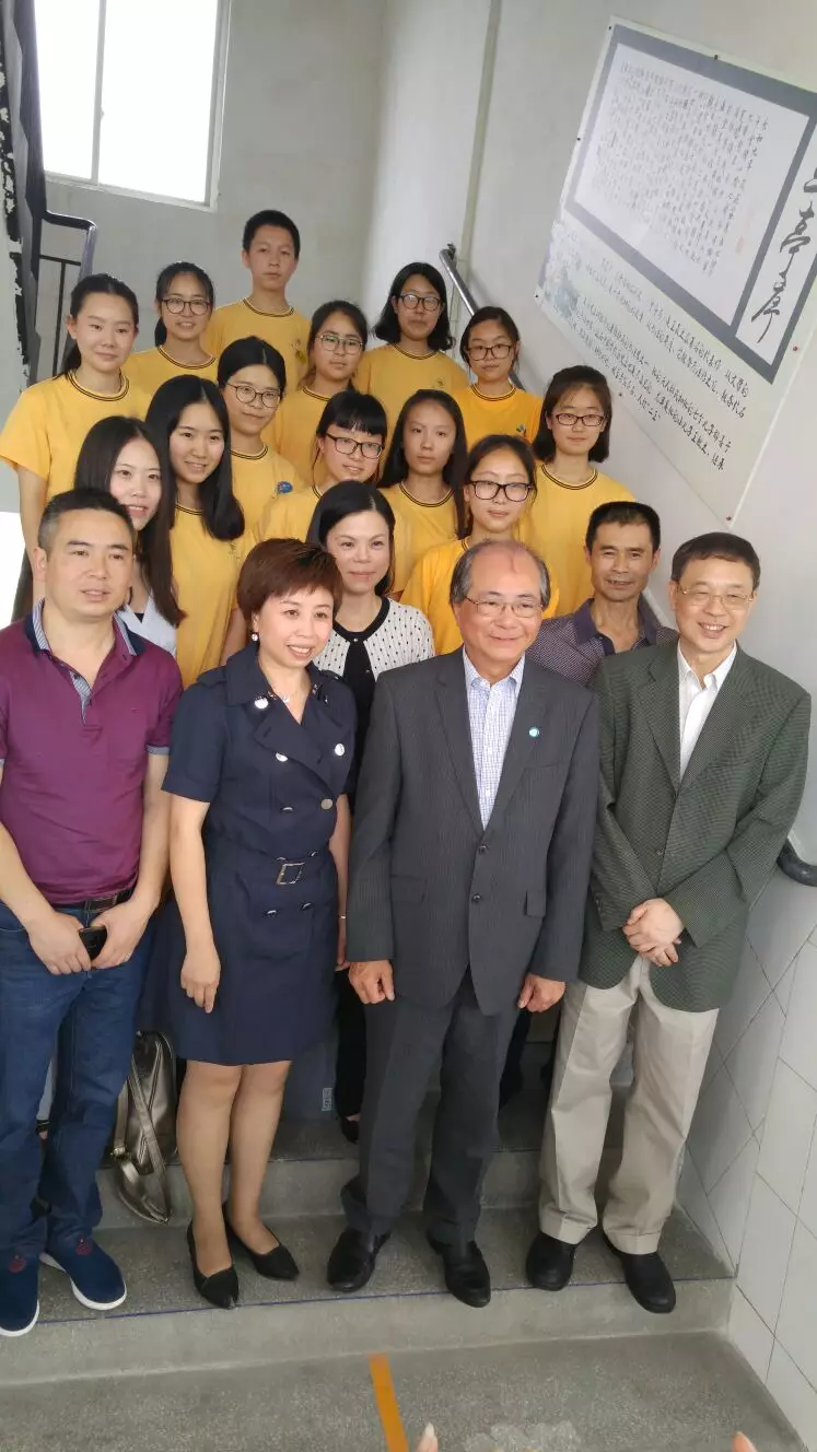 出席四川省教育廳和香港教育局合辦的賑災十周年交流會的北川師生,和金文泰校友吳克儉局長(前右二),金文泰校長馮黎妙儀(二排中),及楊宇杰校友(前右)合照。(2018。眉山)楊向杰供相