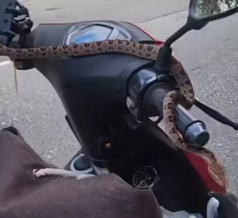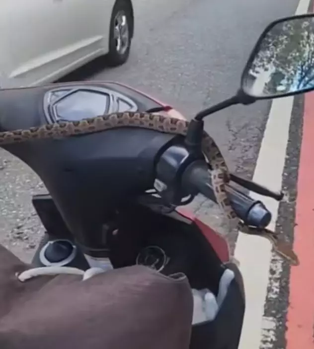 日前,台灣一名帖主於「爆料公社」發帖分享恐怖經歷指,朋友騎車經過一處樹蔭時,突然感覺手邊「癢癢的」,低頭發現一條蛇正趴在電單車龍頭上,疑從樹上墜至電單車上,場面十分嚇人。