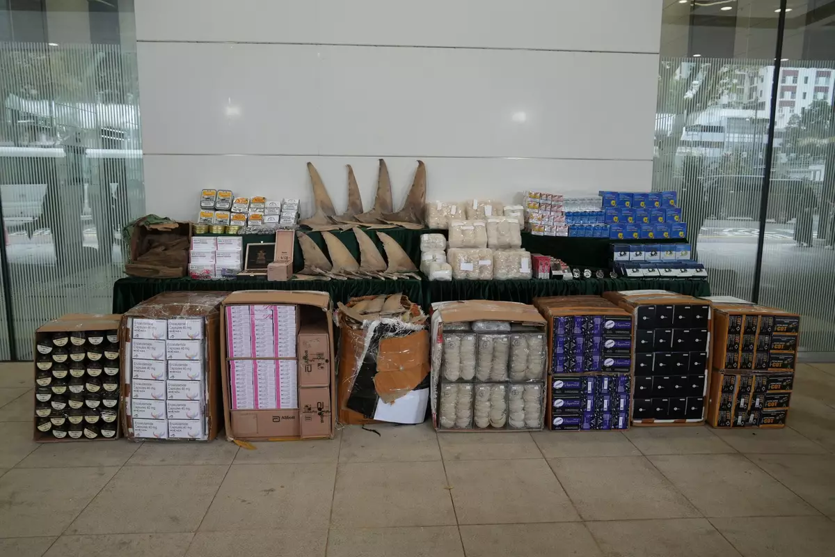 海關透過情報分析及風險評估,在本月5日和8日初分別抽查兩艘由香港出發前往澳門的內河船。經查驗後,海關在該兩艘船上檢獲大批懷疑走私貨物,包括懷疑藥劑製品、煙草產品、燕窩,以及懷疑受管制屬瀕危物種的魚翅及沉香。