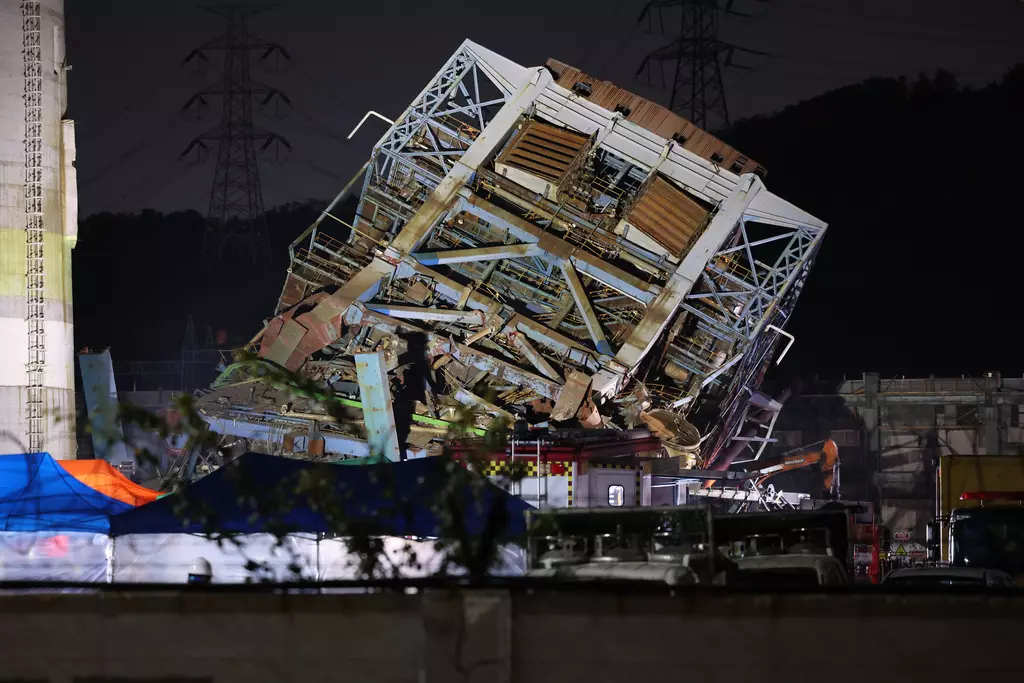 事發在當地星期四下午2時過後,蔚山市南區一間發電廠的一個60米高塔式鍋爐,在拆除過程中倒塌,消防最初接報有9人被困,到場後救出兩人,並通宵搜救其餘人士。