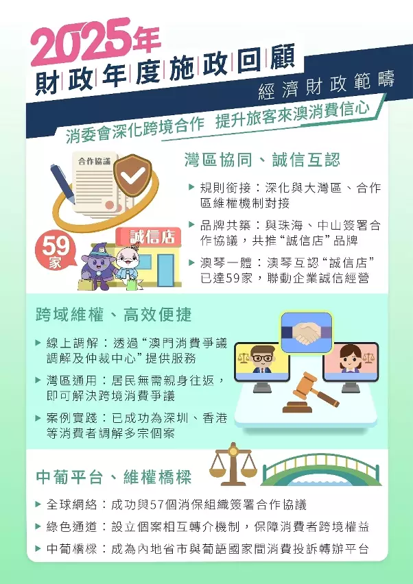 為落實2025年施政報告提出維護消費權益,深化區域消保合作的方針,澳門消費者委員會(下稱「澳門消委會」)積極加強與各地消費者組織合作,透過專業便捷的服務切實保障消費者合法權益,進一步提升旅客來澳消費的信心,助力澳門「世界旅遊休閒中心」建設,促進澳門經濟適度多元發展。