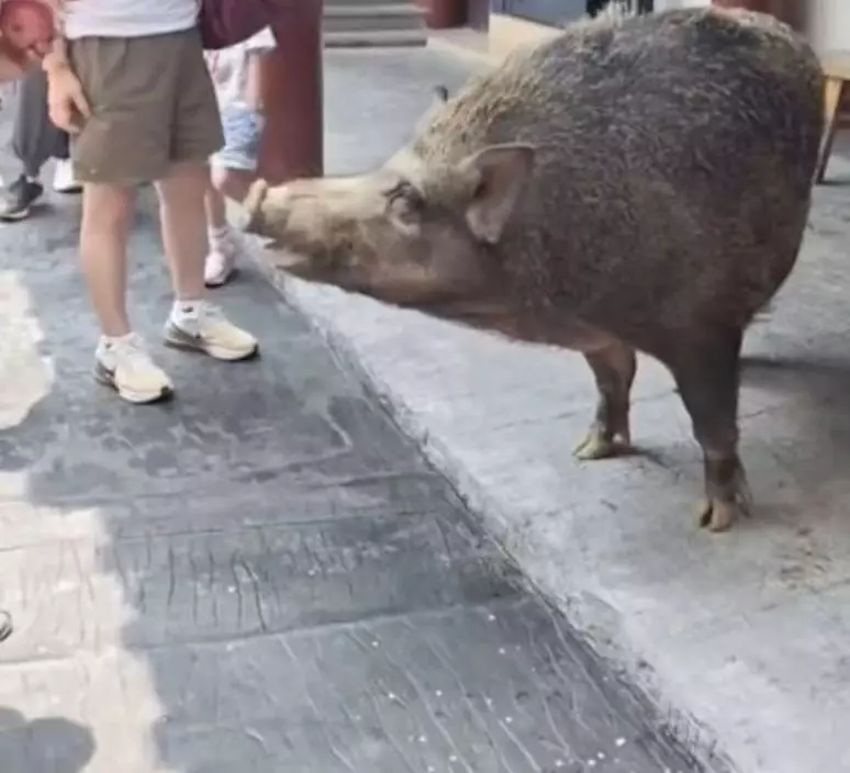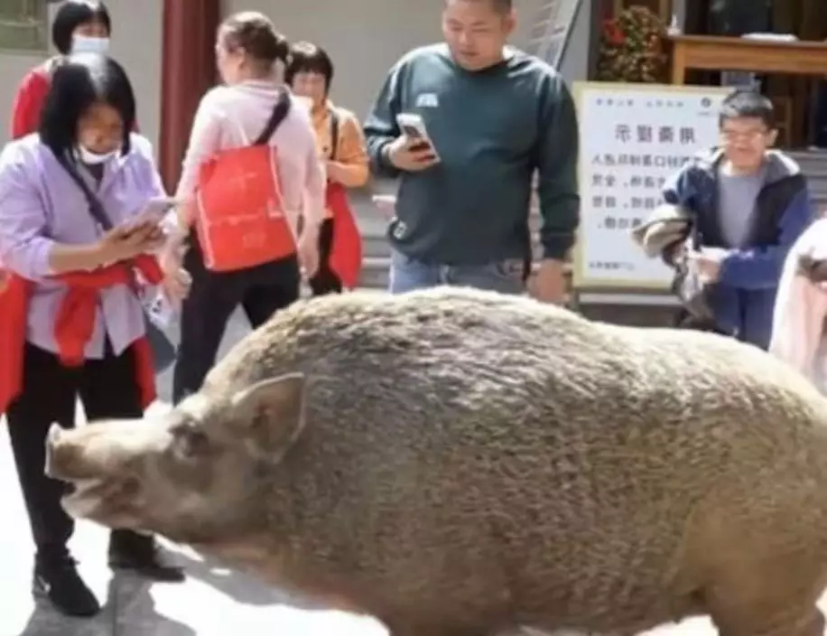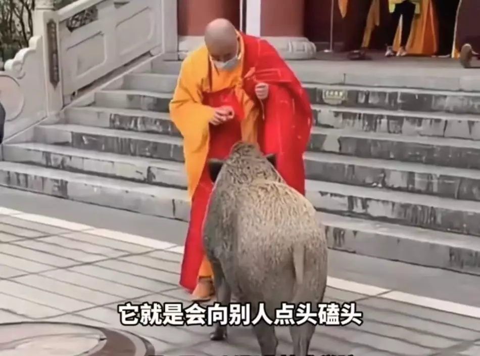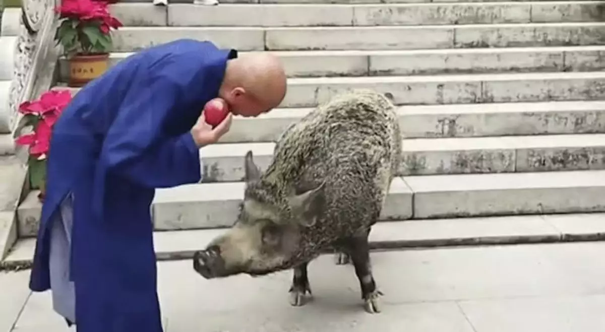 江門一隻150KG的野豬因幼時被救助與人類結下不解之緣,留在寺廟內生活,近來因聰明通人性且愛食蘋果爆紅網絡。