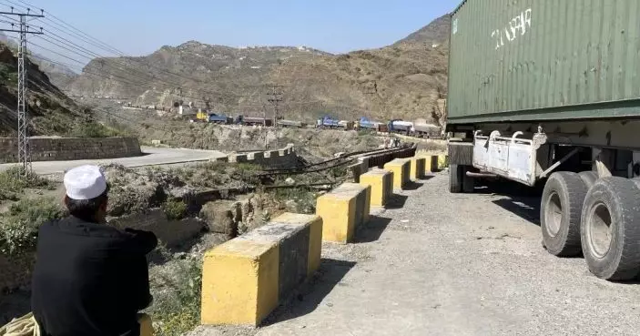在巴基斯坦與阿富汗的邊境口岸多爾哈姆,卡車因邊境地區衝突而滯留。新華資料社
