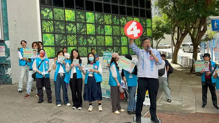 吳秋北跟競選團隊一同拉票。巴士的報記者攝