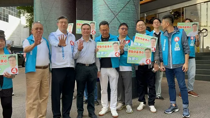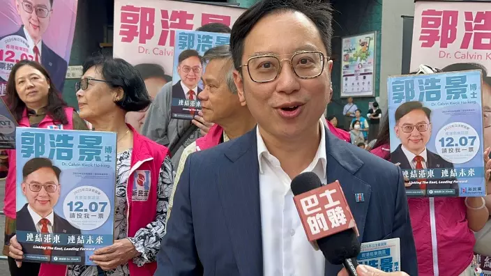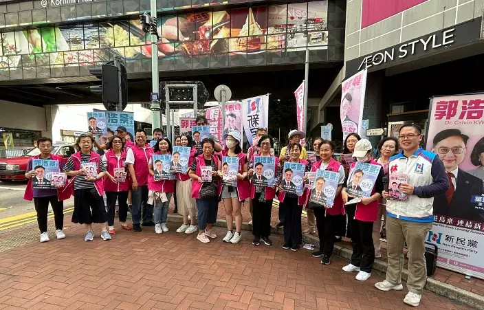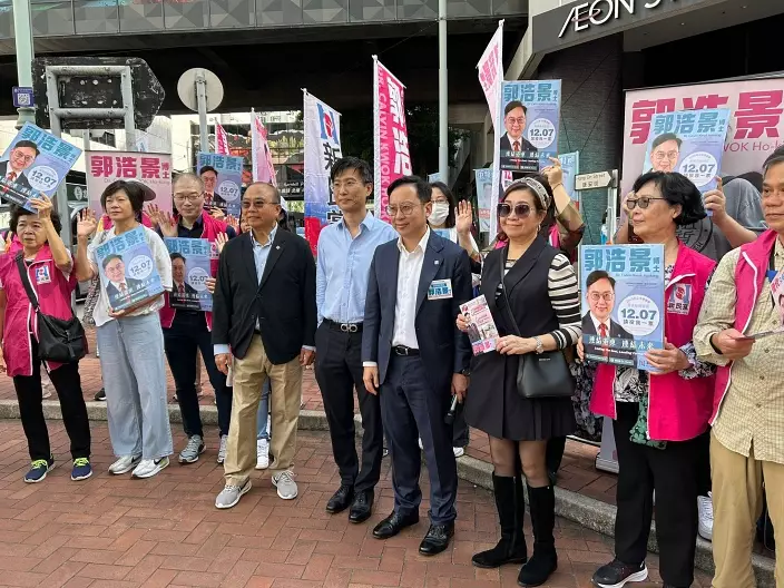 同樣是東區區議員、新民黨的3號參選人郭浩景,其拉票團隊身著粉色背心,黨友林梓鴻也「給力」不斷揮手跟市民打招呼、派發單張支持。郭浩景指,選舉氛圍激烈,他會全力以赴,自己在東區服務10年,希望憑藉其精算專業進入立法會,能「精算」施政,不僅是講福利、講發展,而是如何取得平衡,將有限資源進行有效、精準的分配。他認為,香港金融產品可做得更闊,讓各行業更有效的風險管理工具,幫助香港經濟發展。