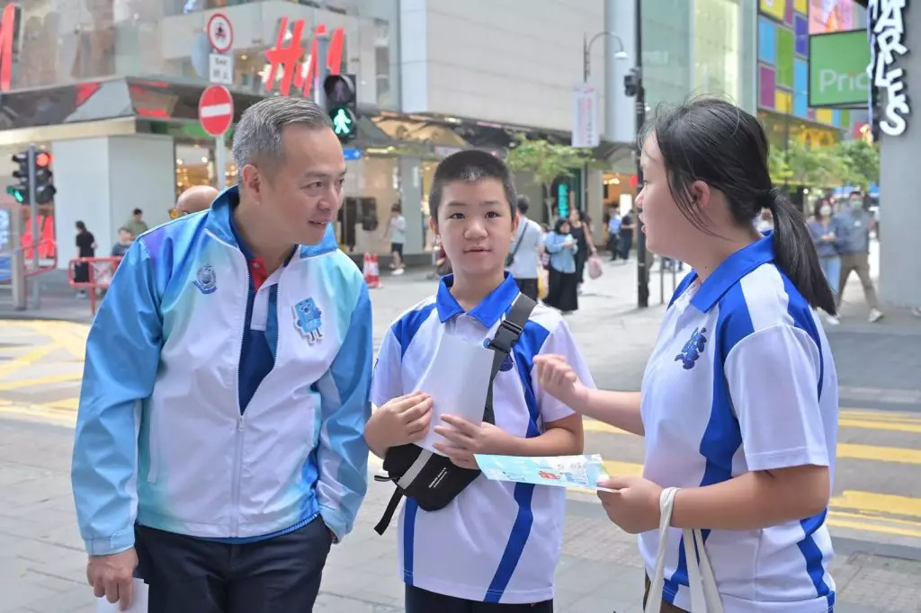 警務處處長周一鳴周六(8日)聯同灣仔警區少年警訊及耆樂警訊會員,於銅鑼灣百德新街向市民派發宣傳單張及紀念品,呼籲公眾在12月7日立法會換屆選舉日踴躍投票,共同為香港未來出一分力。