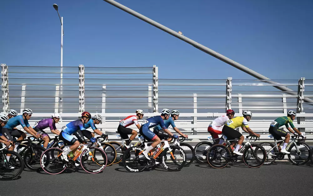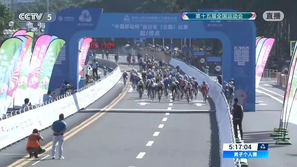 11月8日,選手們在公路單車男子個人賽決賽中。新華網圖片