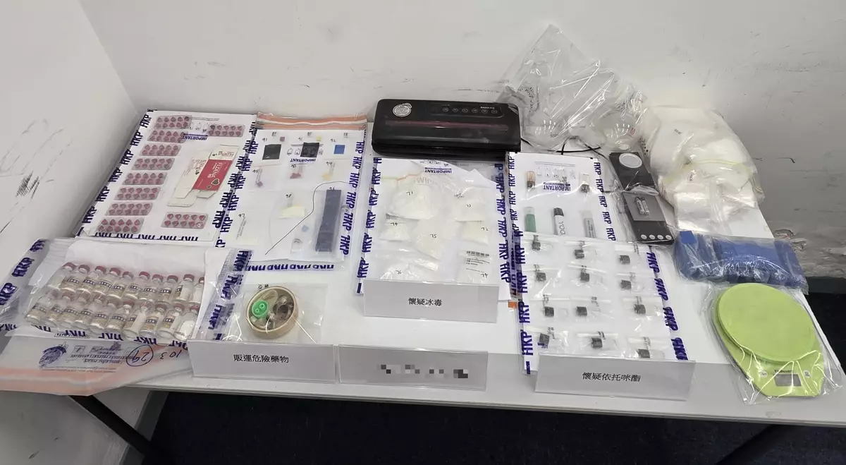 該名42歲本地男子涉嫌「販運危險藥物」及「管有第一部毒藥」等罪名被捕,現正被扣留調查。案件將於星期一上午在東區裁判法院提堂。
