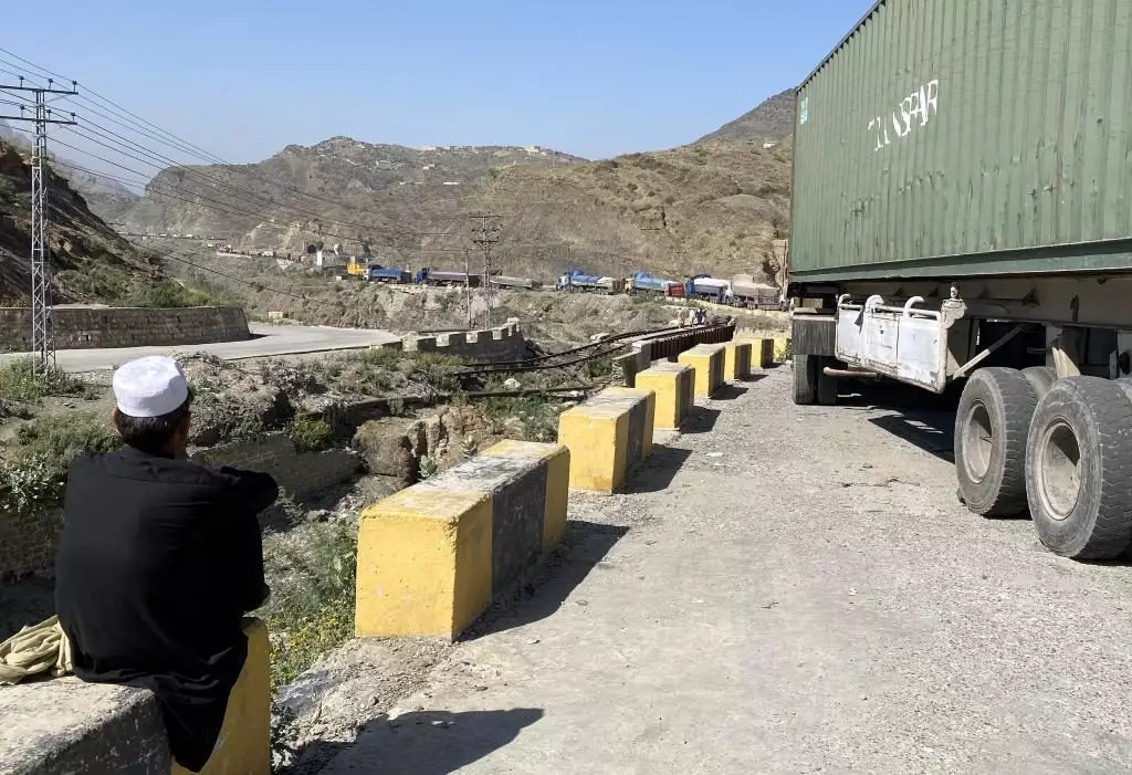 10月13日,在巴基斯坦與阿富汗的邊境口岸多爾哈姆,卡車因邊境地區衝突而滯留。新華社