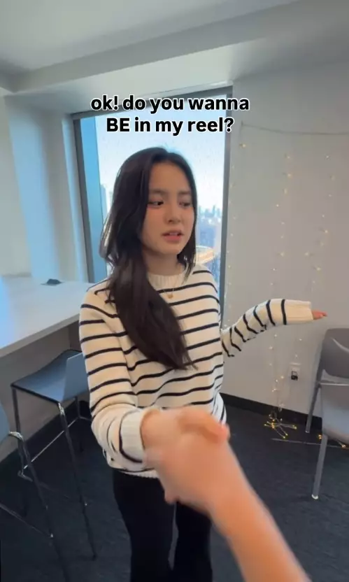 Chantel在IG分享影片,並留言:「Ryan are you camera shy? midterms are over! more game shows to come~(Ryan你面對鏡頭害羞嗎?期中考結束了!接下來還有更多遊戲節目~)」影片中,穿著黑白間條冷衫的Chantel拖實Ryan的手,並問他:「hey do you wanna do reels with me?(嘿,你想和我一起拍影片嗎?)」Ryan爽快答應:「yea sure. i'm film major.(好啊,我是電影專業的。)」Chantel再追問:「ok! do you wanna BE in my reel?(好!那你想在我的影片中出現嗎?)」Ryan聞言竟然縮沙:「wait..um i gotta run.(等等…嗯,我得走了。」)然後轉身離開,二人一來一往的互動充滿青春氣息,畫面更洋溢着一片粉紅泡泡!網民亦非常期待二人之後的作品!