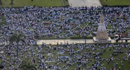 超過20萬人星期一在首都馬尼拉聚集,部分人穿著白色衣服及舉起標語,促請政府加快調查防洪工程是否涉及貪污,並要求追究有關官員和承辦商責任。