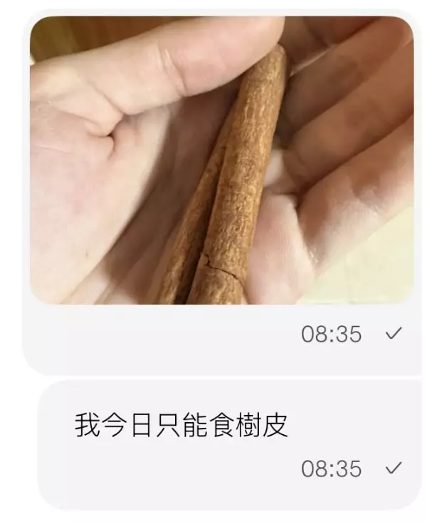 事主續稱「聽日就要行獅子山返工,食樹皮」,更上傳手持樹皮照片。Threads截圖