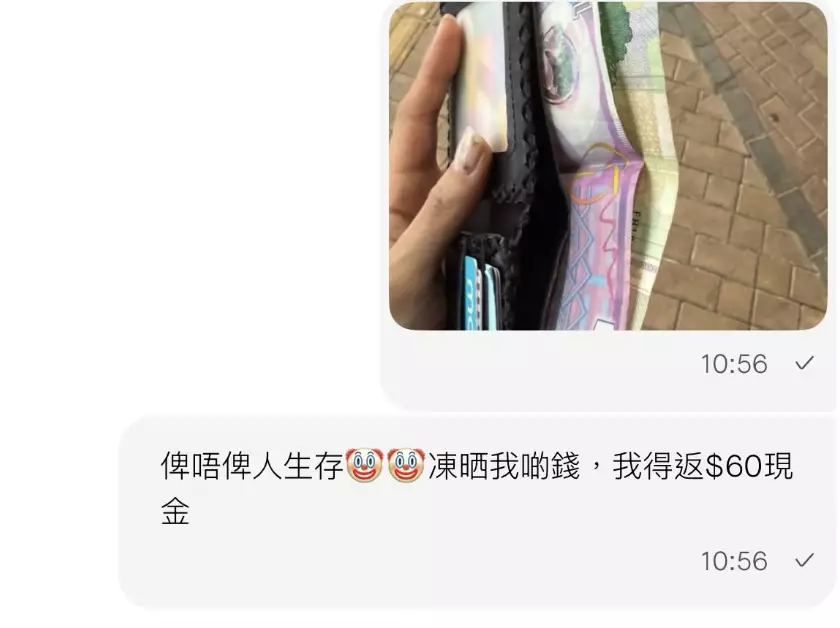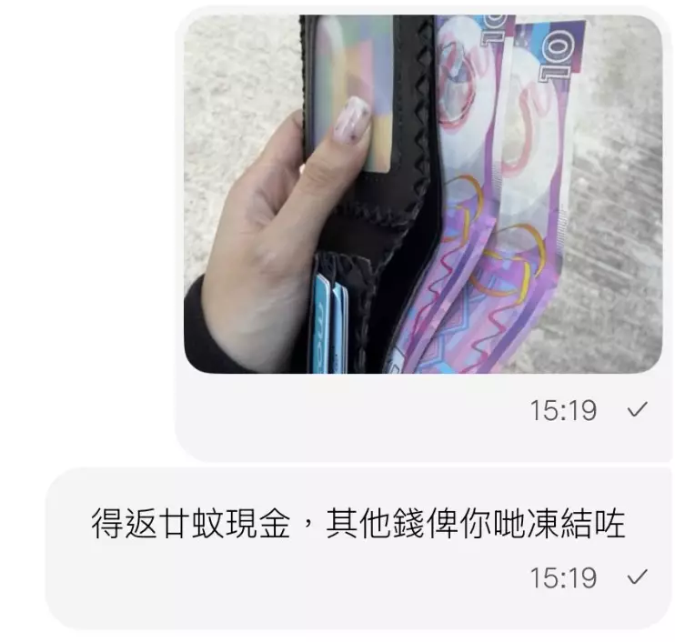 凍結後事主多次聯絡客服,展示銀包僅餘60元、20元現金的照片。Threads截圖