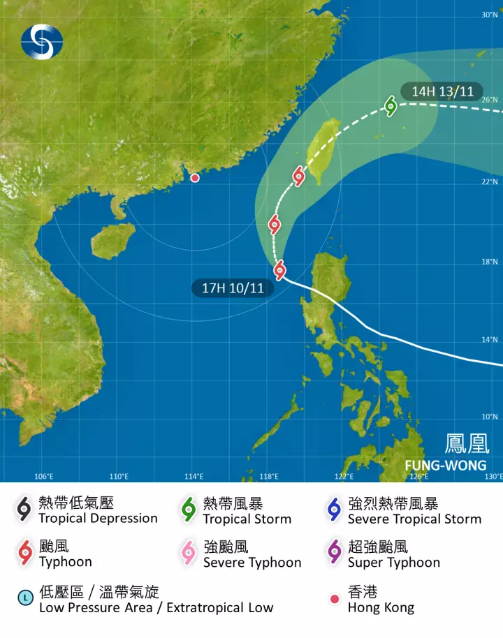 天文台高級科學主任江如秋表示,過去數小時,受乾燥的東北季候風影響,鳳凰北面的外圍對流稍為減弱,但中心附近的結構仍然緊密,維持颱風強度。鳳凰正逐漸轉向偏北方向移動,預料會在明晚至星期三初時最接近本港,於香港以東400公里以外掠過。隨後鳳凰會移向台灣一帶,逐漸遠離本港並減弱。