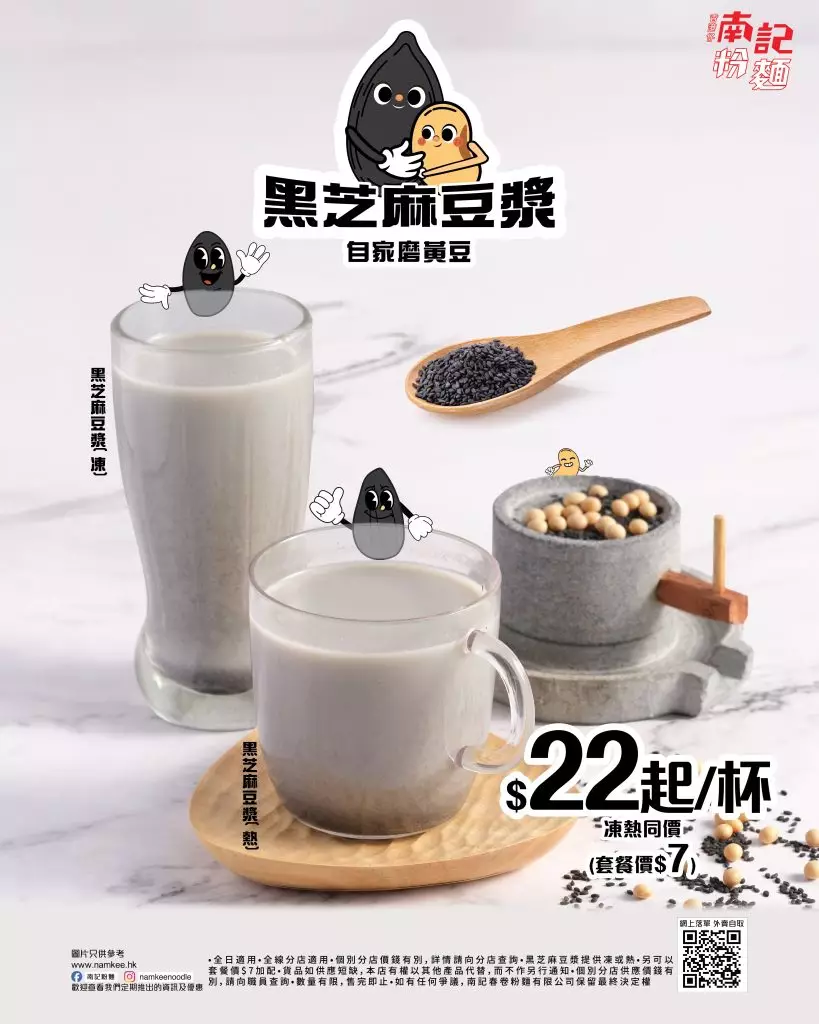 想要過一個暖心冬日?當然不可以錯過南記粉麵為你精心準備的冬日特飲—黑芝麻豆漿,採用了自家磨黃豆製成的豆漿配以風味濃郁的黑芝麻而成,微甜且口感細膩,黑芝麻及豆漿亦各有益處,首度登場即成今個冬季必飲特飲之一!