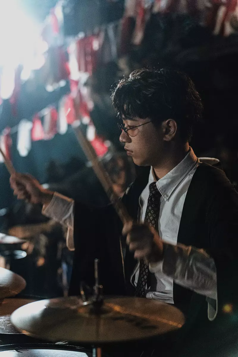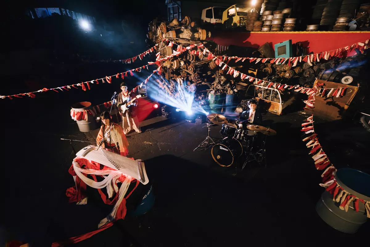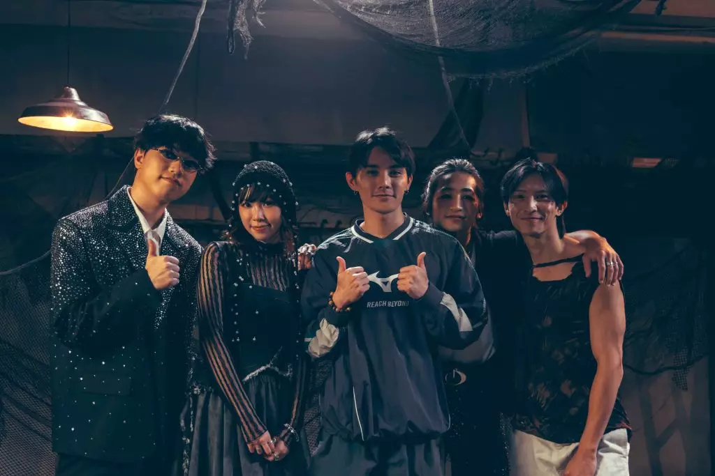 (左起)鼓手霍金、主音Emiko、導演莊世圖、結他手Billy、演員川允太