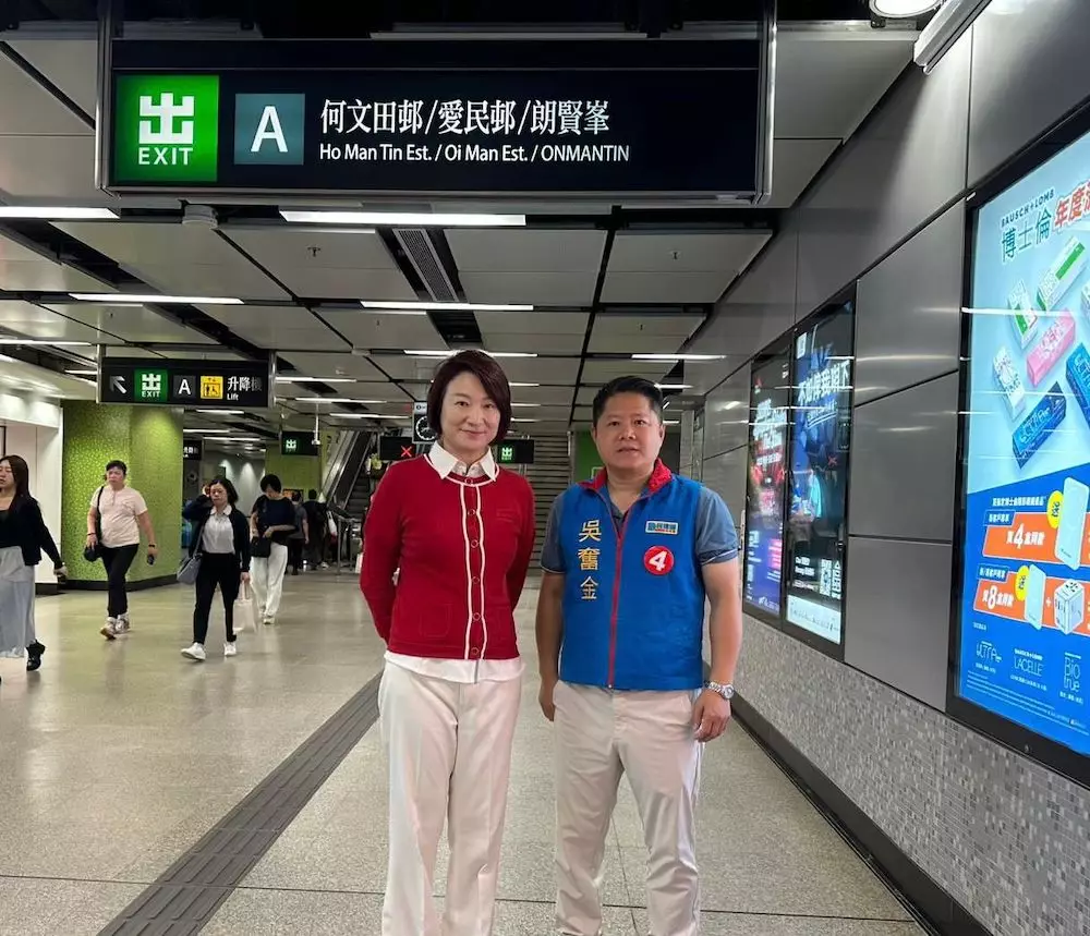李慧琼亦到車站出口視察。其他九龍中候選人還有楊永杰、丘燿誠、楊諾軒、譚莉儀及李超宇。李慧琼fb圖片