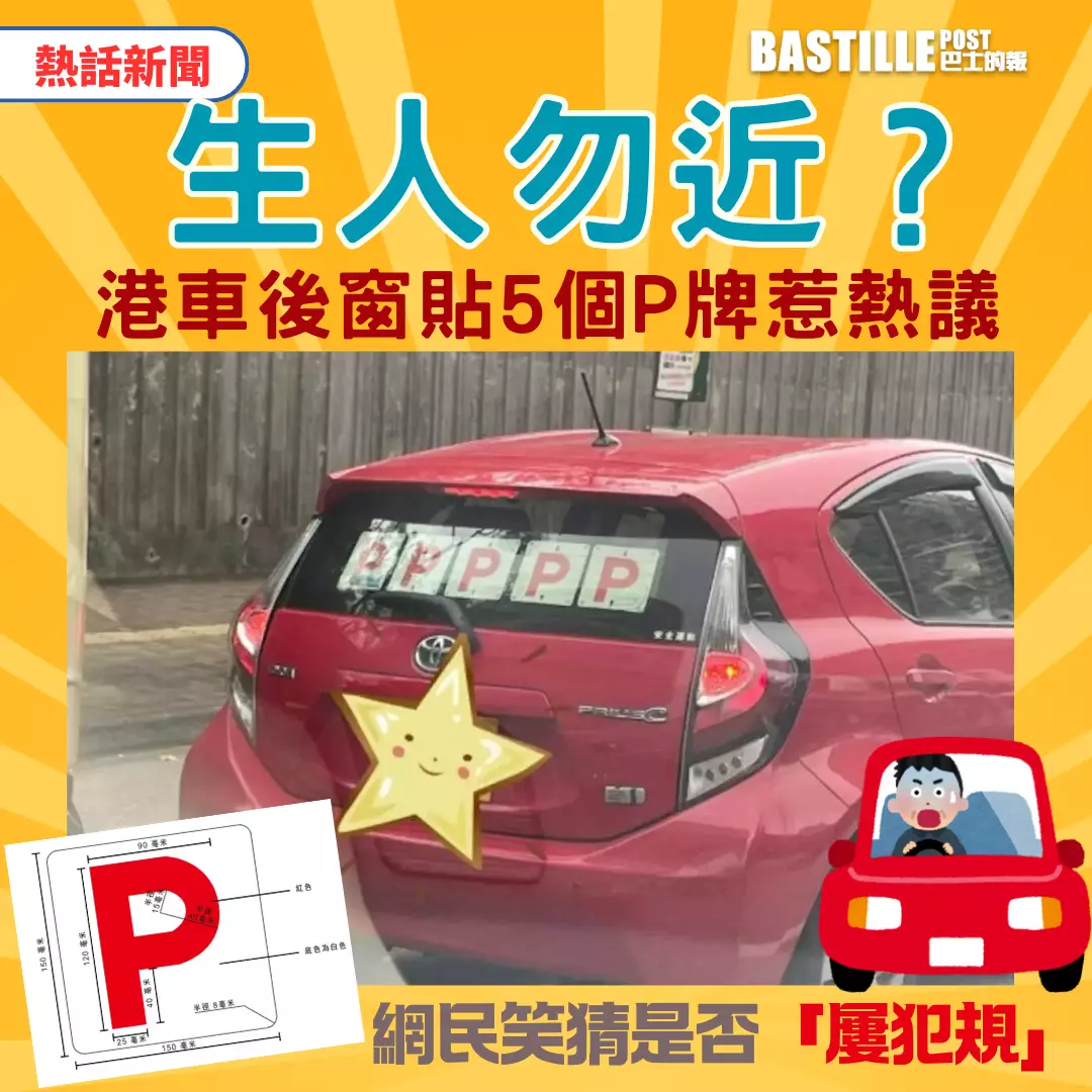 香港新牌司機需在車身展示「P牌」一年,期滿方可轉正式駕駛執照,俗稱「甩P」。近日網絡瘋傳一張照片,一輛豐田私家車後窗竟貼上5個P牌,引發網民熱烈討論。