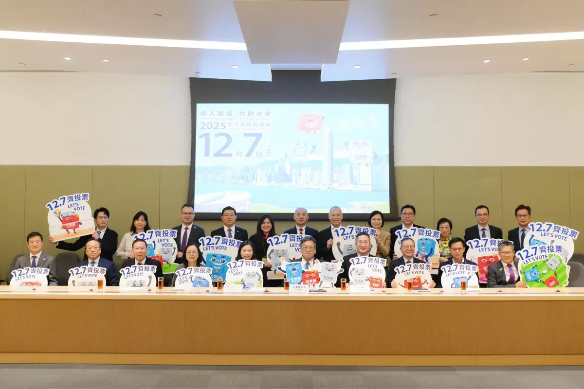 商務及經濟發展局局長丘應樺聯同副局長陳百里等與本港主要商會代表會面,呼籲商會透過不同渠道,推動轄下組織及會員支持立法會選舉,踴躍投票。