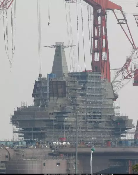 中國自行製造的第一艘國產航母,建造工程如火如荼。國產航母在大連造船廠組裝的照片曝光,顯示艦島已接近安裝完成,距離下水又近了一大步。