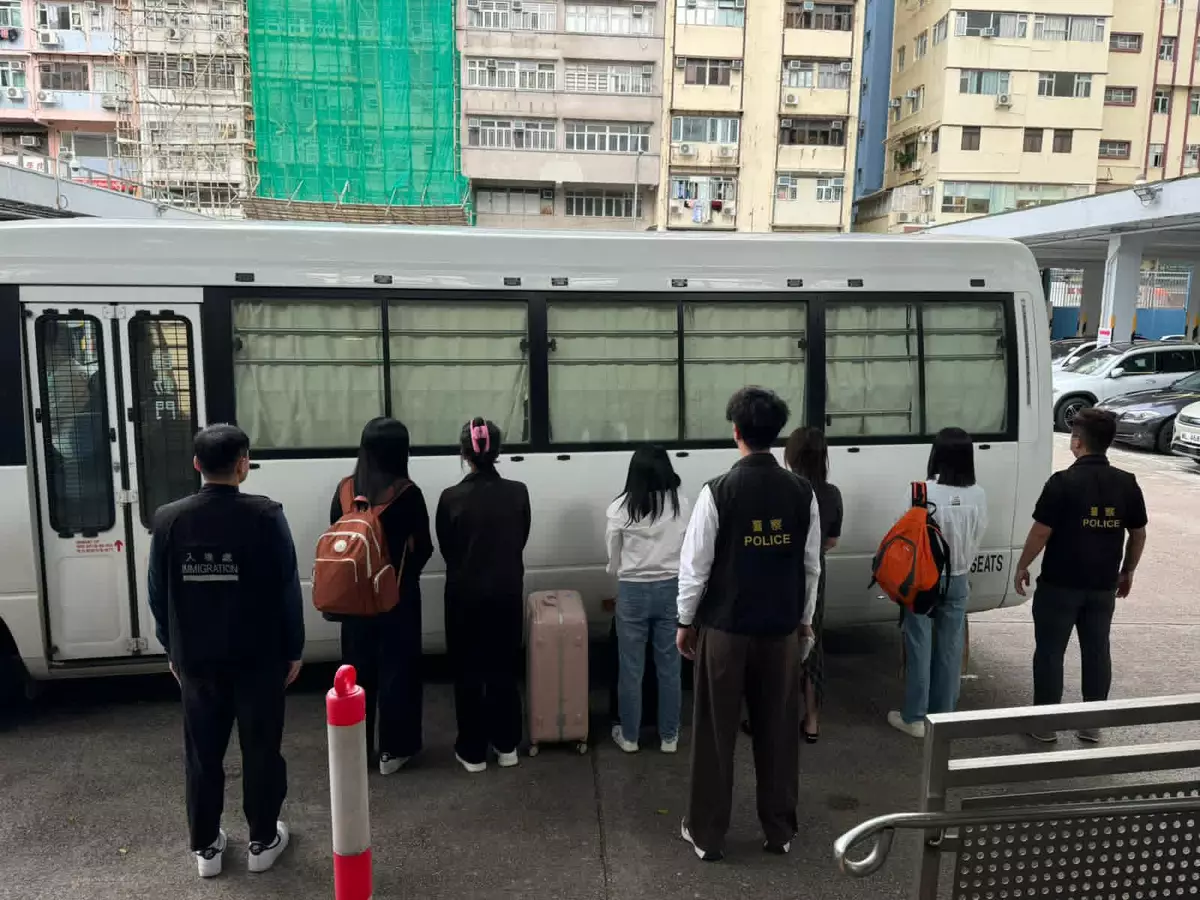 行動中,警方於九龍城區及紅磡區共拘捕19人,2名內地男子及16名內地女子,年齡介乎24至57歲,涉嫌「違反逗留條件」;一名47歲外籍女子則涉嫌「未經入境事務處處長授權而留在香港」。所有被捕人現正被扣留調查,稍後將交由相關部門跟進。