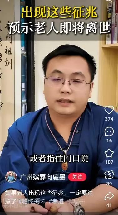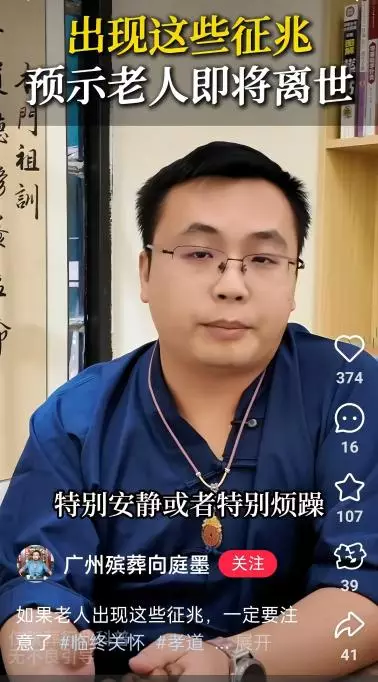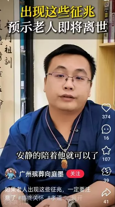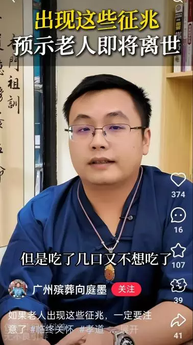 老人臨終三個徵兆。「廣州殯葬向庭墨」小紅書影片截圖