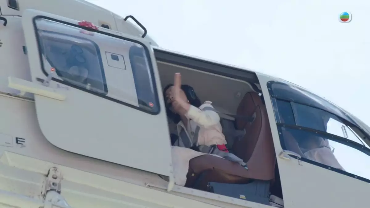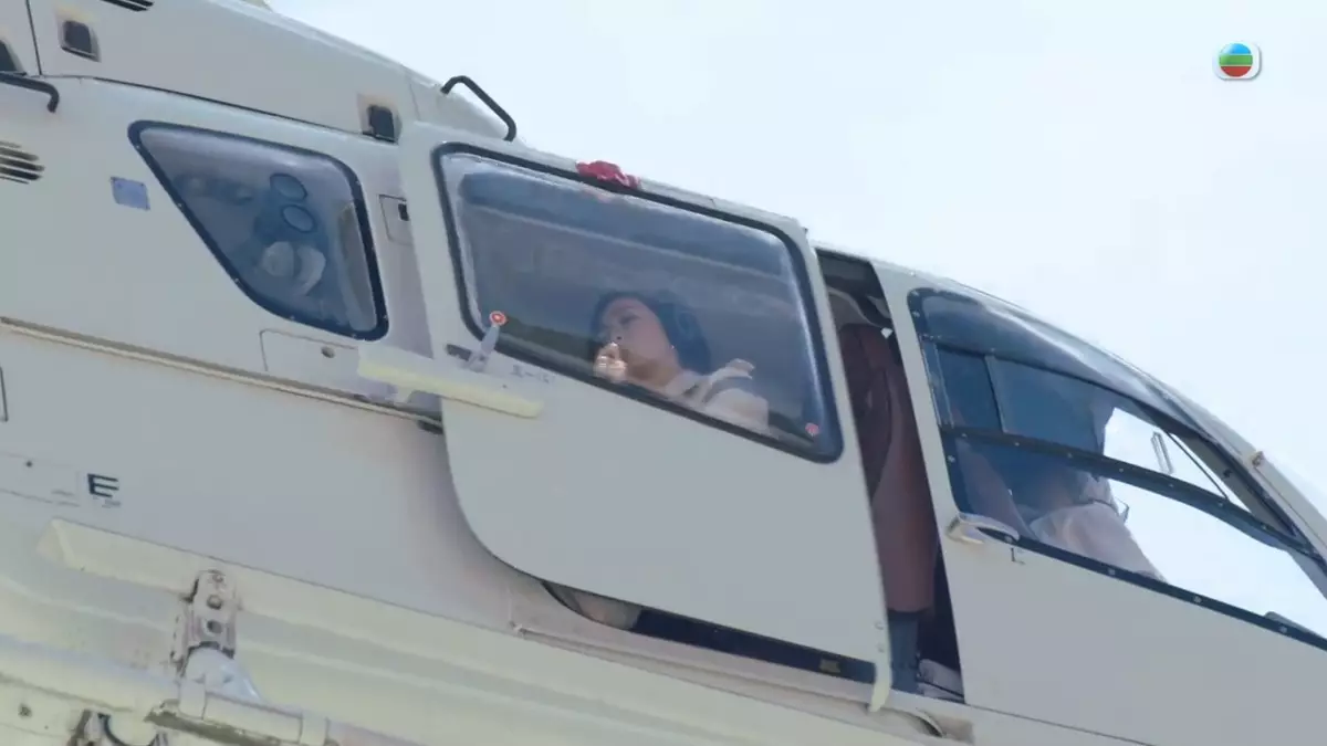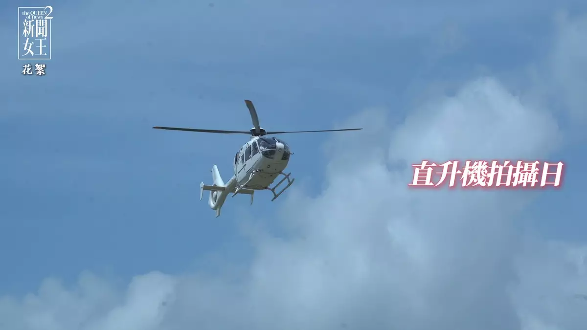 片段所見,阿佘正式升上約八層樓高的高度後,果真全程打開直升機機門進行拍攝,相當大膽。據知,原本劇組只計劃透過直升機玻璃拍攝阿佘,但阿佘為了拍攝效果,主動要求全程打開機門拍攝,相當專業!完成高空拍攝過程,阿佘落地第一件事即大叫「好玩」,之後再轉戰藍幕前拍攝直升機遇到強勁爆炸氣流的畫面。雖然全程要靠想像演出,但當然難不到視后級的阿佘,全程百分百投入的阿佘,不但反應勁逼真,更一度肉緊至「飛甩無線咪」,令整個拍攝現場充滿歡樂氣氛。